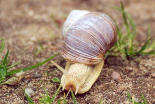 | Die Weinbergschnecke (Helix pomatia) kommt eigent nur weiter im Süden Deutschlands